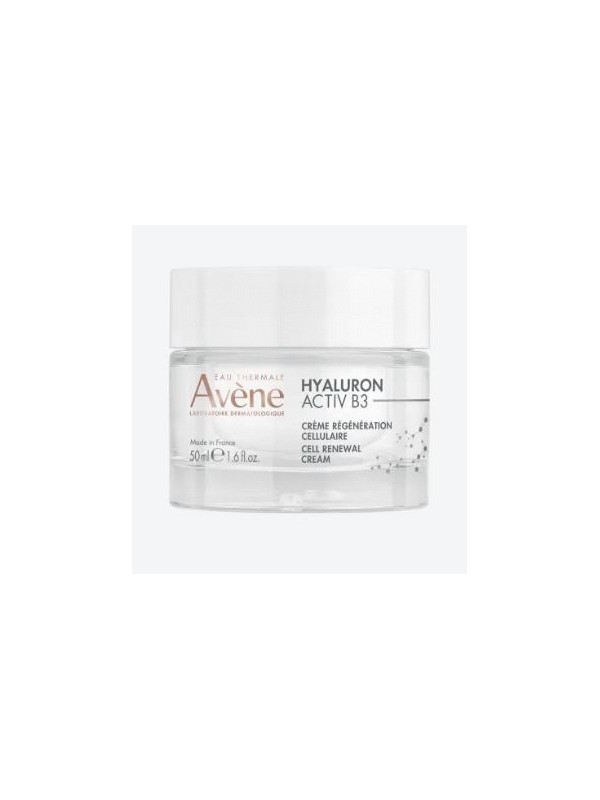 CON LA EDAD TODO SE ACELERA. LAS CÉLULAS ENVEJECIDAS SE EXTIENDEN Y LA PIEL FUNCIONA A CÁMARA LENTA. LOS LABORATORIOS DERMATOLÓGICOS AVÈNE HAN CREADO LA CREMA HYALURON ACTIV B3, CONCENTRADA AL 0,2% EN ÁCIDO HIALURÓNICO PURO (DE ALTO Y BAJO PESO MOLECULAR) Y NIACINAMIDA (6 %) PARA ACTUAR SOBRE LA CAUSA DEL ENVEJECIMIENTO Y PROLONGAR LA VIDA DE LAS CÉLULAS*. LA PIEL QUEDA RELLENA, ALISADA Y RADIANTE DESDE LA PRIMERA APLICACIÓN. DESPUÉS DE 2 SEMANAS, SE REGENERA, SE REAFIRMA Y SE REDUCEN LAS ARRUGAS**. SU TEXTURA ATERCIOPELADA Y DELICADAMENTE PERFUMADA PROPORCIONA COMODIDAD A LA PIEL. TAMBIÉN ES UNA MUY BUENA PREBASE DE MAQUILLAJE. LA CREMA REGENERADORA CELULAR HYALURON ACTIV B3 ES UN PRODUCTO DE CUIDADO DE LA PIEL ECOCONCEBIDO QUE CONTIENE UN 92 % DE INGREDIENTES DE ORIGEN NATURAL Y SE PRESENTA EN UN TARRO DE CRISTAL 100 % RECARGABLE.*PRUEBA IN VITRO, GRACIAS A LA NIACINAMIDA.**AUTOEVALUACIÓN, 71 USUARIOS, 1 APLICACIÓN AL DÍA.BENEFICIOS• REFRESCA LA PIEL PARA EL 97 % DE LAS MUJERES.• REDUCE LAS ARRUGAS EN TAN SOLO 2 SEMANAS.• REGENERA LA PIEL PROLONGANDO LA LONGEVIDAD DE LAS CÉLULAS.