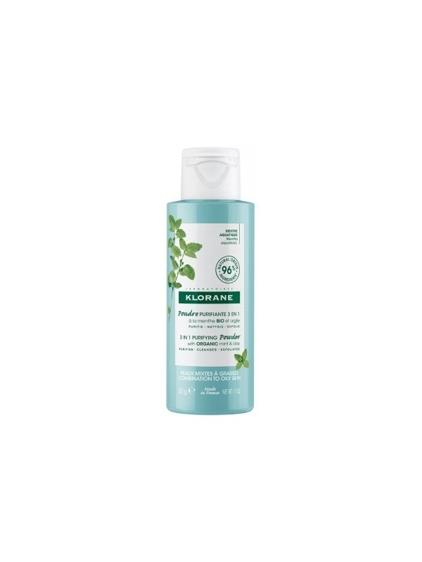 EL POLVO 3-EN-1 A LA MENTA ACUÁTICA BIO Y ARCILLA ES UN LIMPIADOR FACIAL QUE PURIFICA Y EXFOLIA LAS PIELES URBANAS MIXTAS Y GRASAS SIN RESECAR.SU FÓRMULA SUAVE CON UN 96% DE INGREDIENTES DE ORIGEN NATURAL COMBINA 2 INGREDIENTES ACTIVOS COMPLEMENTARIOS, LA MENTA ACUÁTICA, CONOCIDA POR SUS PROPIEDADES DETOXIFICANTES Y ANTIOXIDANTES, Y LA ARCILLA VERDE, QUE ABSORBE LAS IMPUREZAS.EN CONTACTO CON EL AGUA, EL POLVO PURIFICANTE SE TRANSFORMA EN UNA LIGERA ESPUMA QUE SE APLICA SOBRE EL ROSTRO CON MOVIMIENTOS CIRCULARES. UNA VEZ ACLARADO, DEJA LA PIEL SUAVE Y LIBRE DE TODAS LAS IMPUREZAS.VENTAJABOTELLA HECHA CON PLÁSTICO 100% RECICLADO Y RECICLABLE. EL POLVO PURIFICANTE CONTIENE UNA CANTIDAD DE PRODUCTO SUFICIENTE PARA 100 USOS Y GENERA DOS VECES MENOS EMISIONES DE CO2 QUE UN PRODUCTO CONVENCIONAL*.BENEFICIOS- PURIFICA: ACCIÓN PURIFICANTE Y ANTICONTAMINACIÓN PARA UNA PIEL LIMPIA Y PROTEGIDA.- LIMPIA: ELIMINA LAS IMPUREZAS DE LA PIEL SIN RESECARLA, DEJANDO LA PIEL CON UNA SENSACIÓN DE CONFORT, SUAVE Y PERFECTAMENTE LIMPIA.- EXFOLIA: LA FÓRMULA CON ARCILLA VERDE Y MENTA ACUÁTICA BIO EXFOLIA SUAVEMENTE, PARA UNA PIEL CON UNA TEXTURA MÁS FINA Y UN ASPECTO RADIANTE DURADERO.